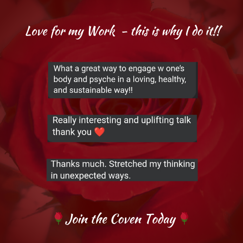 SPECIAL OFFER – Starting March 2024; join live by becoming a Coven Tier member on Patreon.