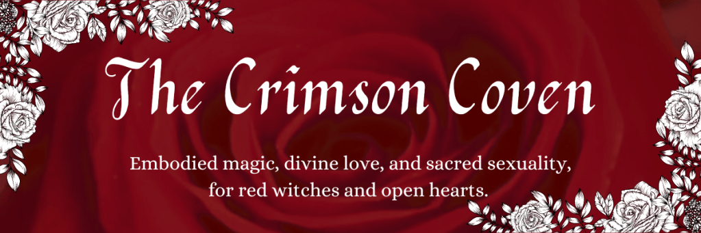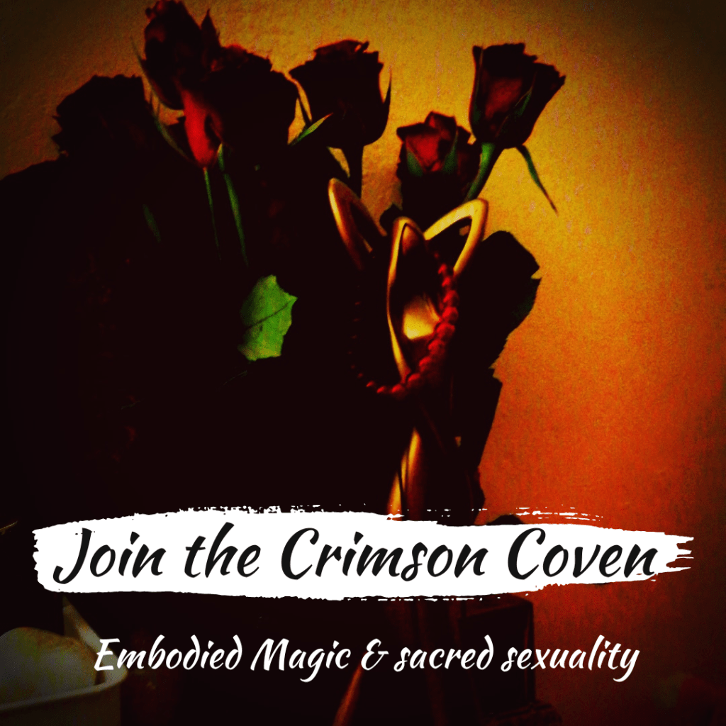 Each month we explore magical journal prompts, discussion topics, creative prompts, and self-love reminders, and share in online meetings and rituals to explore the depths of our magic. The Crimson Coven is a space to share your creative and magical explorations of healing, sensuality, love, and beauty, and to be supported in your journey to wholeness and home in eros – divine love and passion.